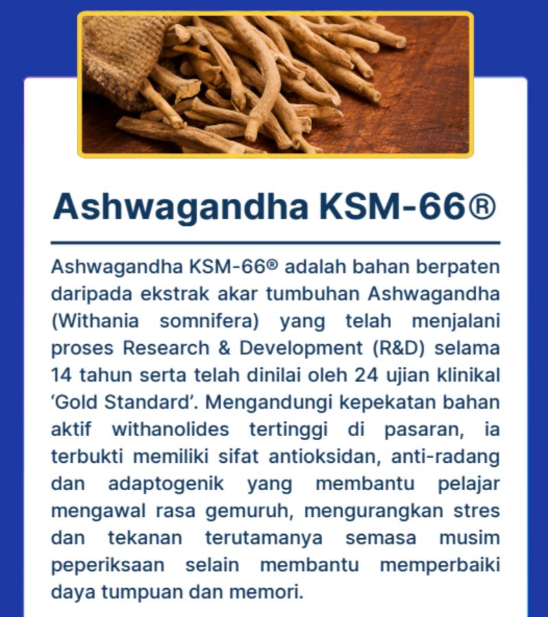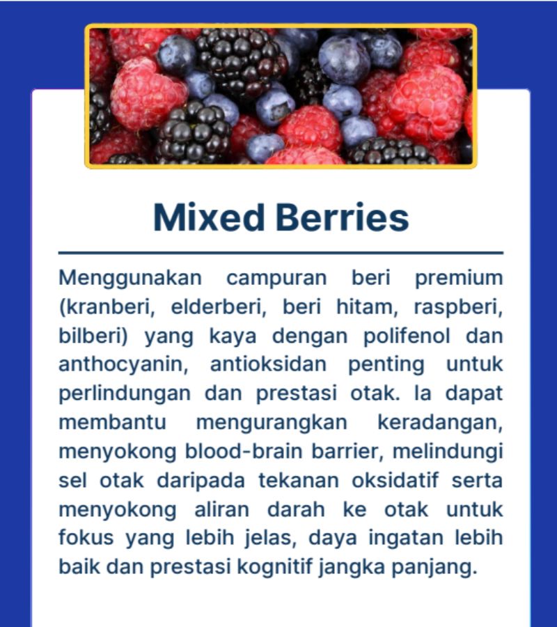 Formula nutrisi minda berasaskan sains untuk menyokong fokus, memori dan potensi pembelajaran anak.